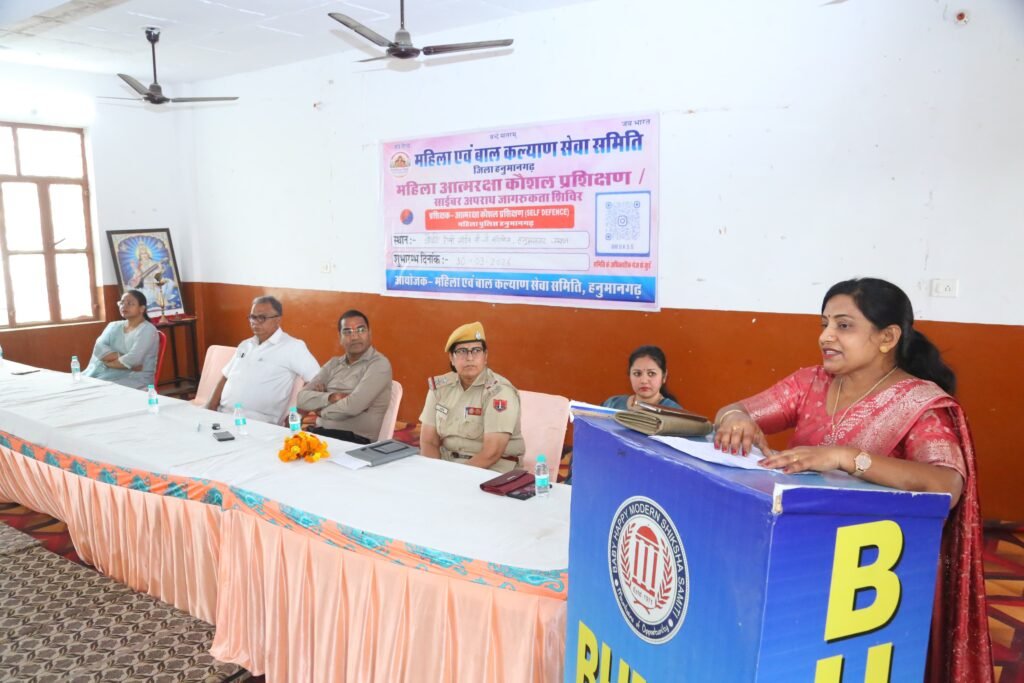 हनुमानगढ़। महिलाओं एवं बेटियों को आत्मनिर्भर और जागरूक बनाने के उद्देश्य से महिला एवं बाल कल्याण सेवा समिति द्वारा सोमवार, 30 मार्च 2026 से बेबी हैप्पी मॉडर्न पीजी कॉलेज में महिला कौशल प्रशिक्षण एवं साइबर अपराध जागरूकता शिविर का शुभारंभ किया गया। यह शिविर सात दिनों तक चलेगा, जिसमें छात्राओं को आत्मरक्षा के साथ-साथ साइबर सुरक्षा से जुड़ी महत्वपूर्ण जानकारियां दी जाएंगी।