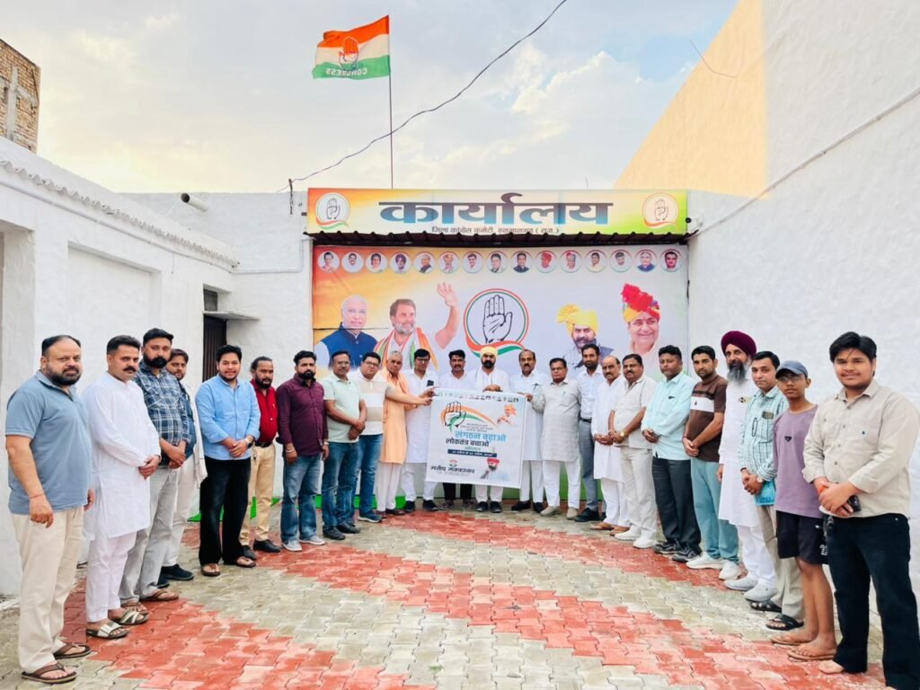 हनुमानगढ़। प्रदेश कांग्रेस कमेटी के निर्देशानुसार चलाए जा रहे “संगठन बढ़ाओ, लोकतंत्र बचाओ” अभियान के तहत हनुमानगढ़ जिला कांग्रेस कार्यालय में जिलाध्यक्ष मनीष मक्कासर की अध्यक्षता में एक महत्वपूर्ण बैठक आयोजित की गई। बैठक में संगठन को मजबूत करने, कार्यकर्ताओं की भूमिका बढ़ाने और अभियान को प्रभावी ढंग से लागू करने को लेकर विस्तृत चर्चा की गई।