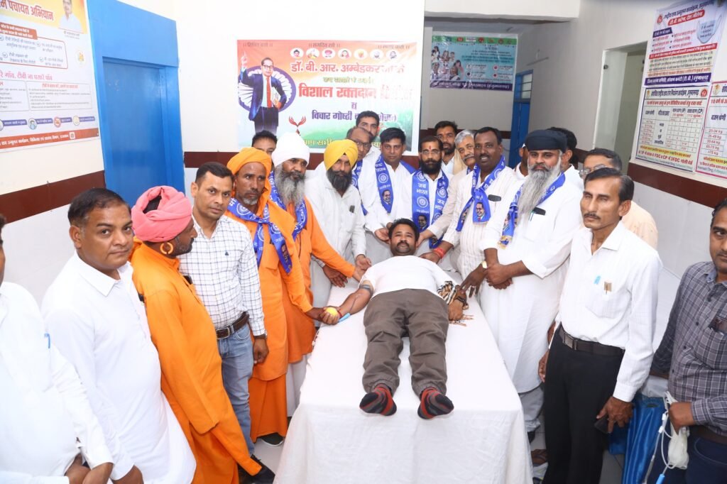 हनुमानगढ़। डॉ. भीमराव अंबेडकर के जन्म पखवाड़े के उपलक्ष्य में रविवार को गांव रामसरा नारायण की थेड़ी गंगानी में विशाल रक्तदान शिविर एवं विचार गोष्ठी का आयोजन किया गया। कार्यक्रम में क्षेत्र के जनप्रतिनिधियों, सामाजिक कार्यकर्ताओं एवं युवाओं ने उत्साहपूर्वक भाग लिया। आयोजन का उद्देश्य बाबा साहेब के विचारों को जन-जन तक पहुंचाना तथा समाज में सेवा और समरसता की भावना को बढ़ावा देना रहा।