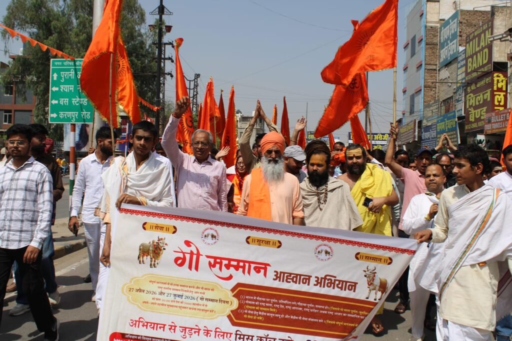 श्रीगंगानगर।गौमाता की सेवा, सुरक्षा और सम्मान के लिए आज श्रीगंगानगर में भी हस्ताक्षर अभियान चलाया गया। प्राचीन शिवालय से सुबह 10:30 बजे शुरू हुई गौमाता सम्मान जागरण यात्रा उपखंड अधिकारी कार्यालय पहुंचकर संपन्न हुई। गौरक्षा दल नरसिंहपुरा बारानी के संयोजक मैसी चौधरी ने बताया कि ब्रह्मचारी कल्याण स्वरूप महाराज, महंत मेवादास महाराज और महंत मेवा दास महाराज के नेतृत्व में 30 हजार से अधिक हस्ताक्षरों वाला ज्ञापन जिला उपखंड अधिकारी नयन गौतम को सौंपा गया। यह ज्ञापन राष्ट्रपति, प्रधानमंत्री, राजस्थान के राज्यपाल और मुख्यमंत्री को संबोधित था।